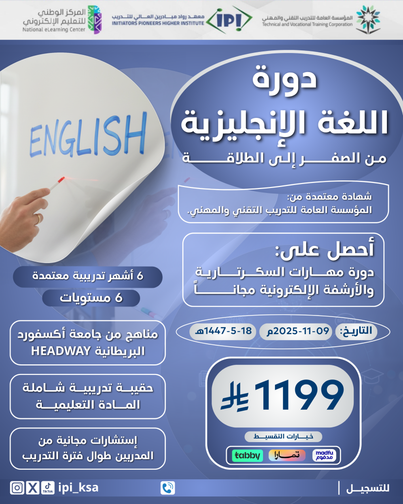 📚 سجّل الآن في دورة اللغة الإنجليزية – 6 مستويات تدريبية شاملة وغيّر مستقبلك!