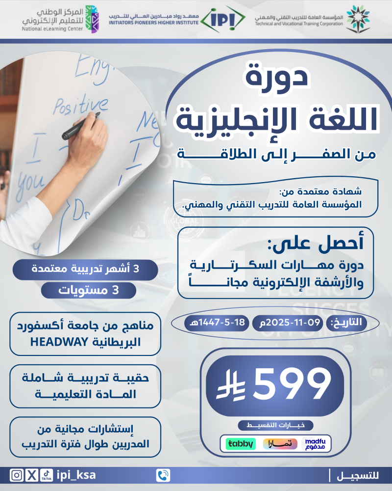 📣 انطلق الآن مع دورة اللغة الإنجليزية المكثفة – 3 مستويات خلال 3 أشهر