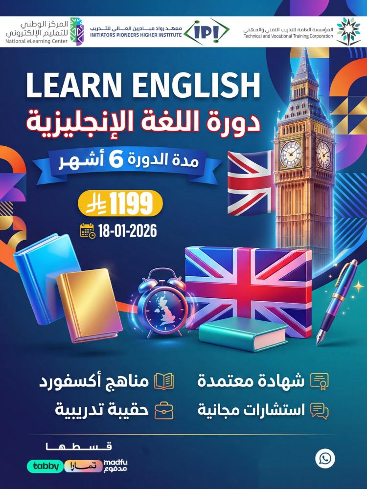 📚 سجّل الآن في دورة اللغة الإنجليزية – 6 مستويات تدريبية شاملة وغيّر مستقبلك!