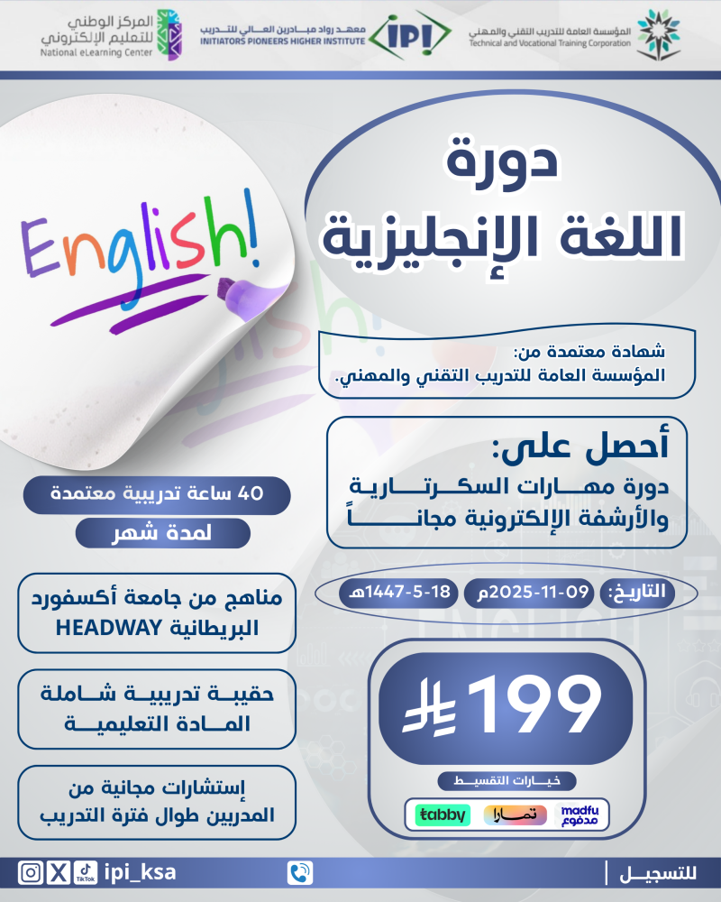 ابدأ رحلتك مع اللغة الإنجليزية مع معهد رواد مبادرين العالي للتدريب بثقة!
